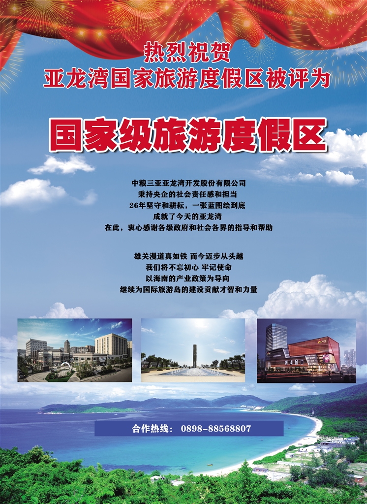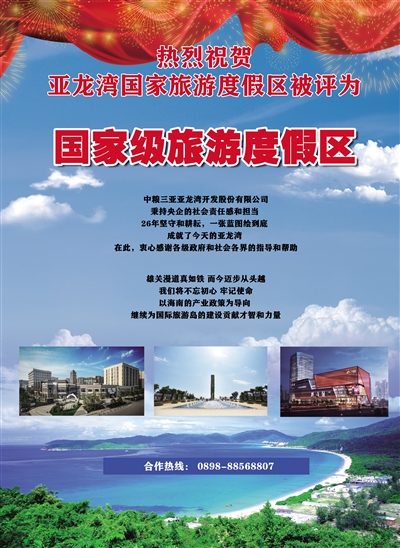 热烈祝贺亚龙湾国家旅游度假区被评为国家级旅游度假区