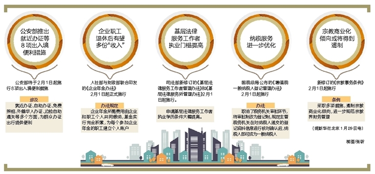 司法部新修订的《基层法律服务工作者管理办法》和《基层法律服务所管理办法》2月1日起施行。