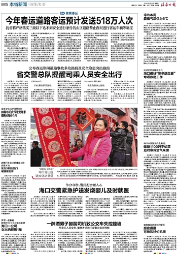 海南日报 本省新闻民生/社会 017 2018-01-301 2018年01月30日 星期二