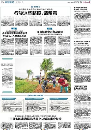 海南日报 本省新闻民生/社会 012 2018-01-311 2018年01月31日 星期三