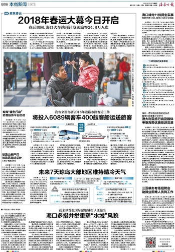 海南日报 本省新闻民生 014 2018-02-011 2018年02月01日 星期四