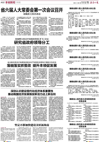 海南日报 本省新闻时政 002 2018-02-011 2018年02月01日 星期四