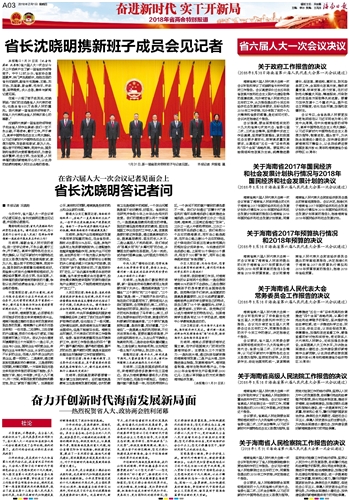 海南日报 奋进新时代 实干开新局 003 2018-02-011 2018年02月01日 星期四
