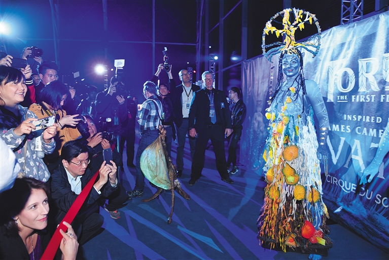 肯表示,在这台阿凡达秀的舞台、服装、道具中,每一个环节都经过精心设计,力求精致、真实,“大到舞台上的灵魂之树,小到演员头饰上的羽毛饰品,都经过精心设计,以符合潘多拉星球的世界。”