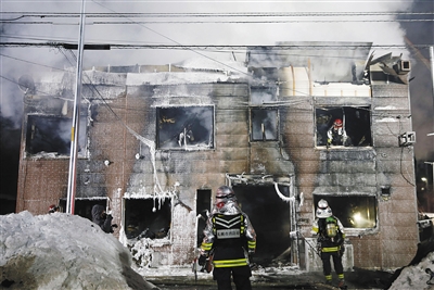 日本北海道札幌市一座公益性老年住宅楼1月31日晚失火,3层建筑物被完全烧毁,11名入住老人葬身火海。