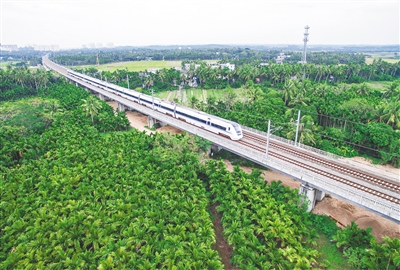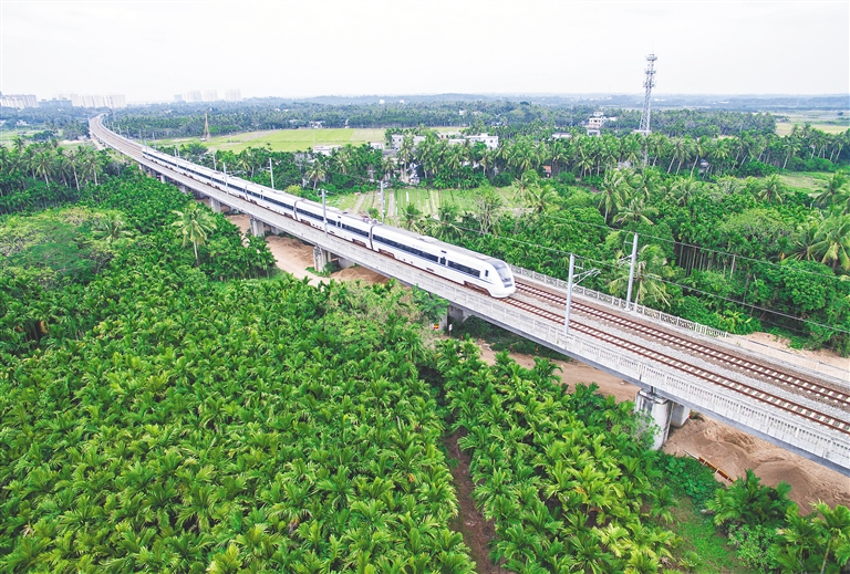 在基础设施上,路网、光网、电网、气网、水网等“五网”基础设施全面加快建设。世界首条环岛高铁开通运营,3小时环游海南岛,饱览沿途美景;美兰、凤凰两大机场改扩建,博鳌机场建成运行,游客出行更便捷;田字型高速公路全面布局动工,“县县通高速”即将成为现实,赏美景不再惧路远。