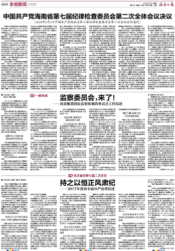 中国共产党海南省第七届纪律检查委员会第二次全体会议决议