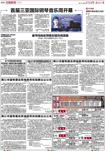 海南日报 文娱新闻综合 006 2018-02-041 2018年02月04日 星期日