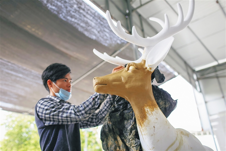 春节临近,无论是城市各类公园、广场、商场,还是旅游景点,各类栩栩如生的雕塑纷纷“粉墨登场”,来装点节日气氛。而这些或大或小、色彩缤纷、形态各异的雕塑是怎么做成的呢?此前,记者走访海口一家全工艺雕塑厂,探悉了雕塑制作全过程。