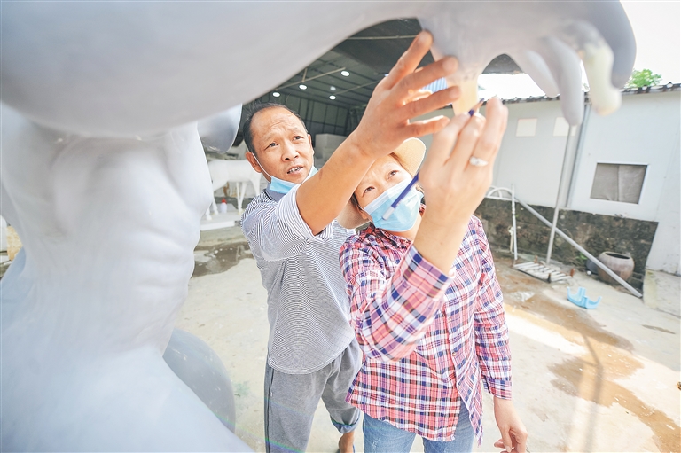 “每一个雕塑都是经过多重工序、精雕细琢出来的。”该雕塑工厂负责人大程说,目前,城市雕塑颇受欢迎,省内的订单源源不断,尤其是春节临近,工厂一直处于忙碌赶工状态。