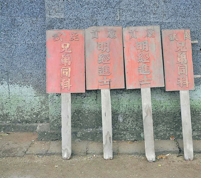 吸引记者一行人前来的不仅是这里幽静美丽的环境,更是这里留传下来“兄弟同科”、崇学尚教的佳话。今天,村中还保留有古牌坊、宾兴碑以及两块清代“院试兄弟同科”“廪贡明经进士”的牌匾,作为历史佳话和古村过往荣光的见证。