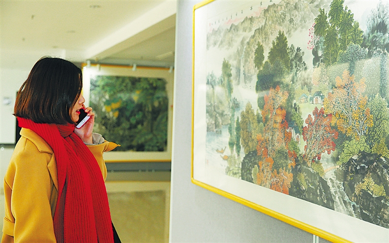 尤其是来自昌江本土的江寿男、阮江华两位画家,带着对热带雨林细致的观察和对家乡的感情,创作出《南岛山水万物葱》《春江水暖》等格局庞大的山水画佳作,也为前来观展的市民们提供了了解霸王岭雨林的新视角。