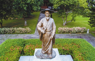 “飨宴东坡乐府胸襟常养浩然气,畅游西岸诗乡市井犹存快哉风。”走进游人如织的儋州东坡书院,舞台两侧的对联十分醒目,“一点浩然气,千里快哉风”的东坡佳句嵌入其中。宋代大文豪苏东坡,曾在儋州中和镇谪居三年。