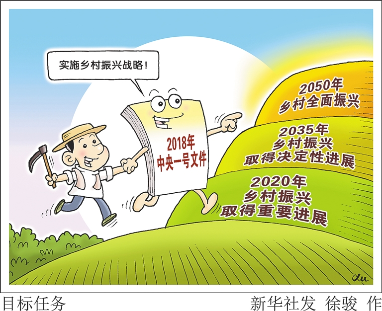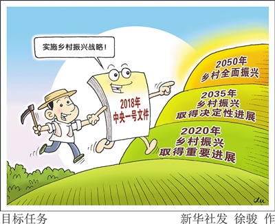 ——有国家战略规划引领。文件提出,制定国家乡村振兴战略规划(2018-2022年)。规划通过与文件对表对标,分别明确至2020年全面建成小康社会和2022年召开党的二十大时的目标任务,细化实化工作重点和政策措施。