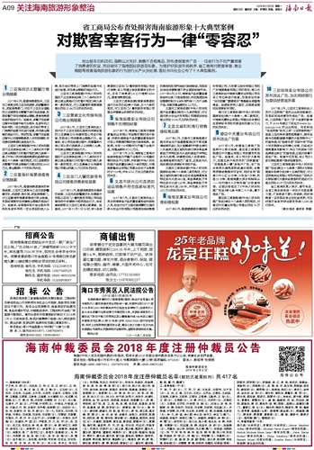 | 海南日报 关注海南旅游形象整治 009 2018-02-051 2018年02月05日 星期一 |