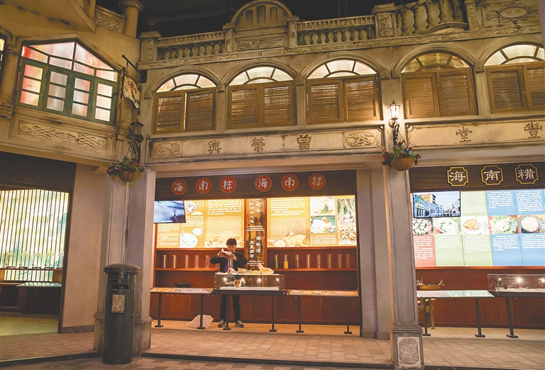 值得一提的是,此次展览采用动态展示与静态展示相结合的方式全面展示海南丰富多彩的历史文化。在四个非遗展览中,观众不仅可以欣赏到海南非遗代表性项目的相关文物,还能够在展厅中看到相关非遗代表性项目手工艺人现场演示,在琼肴街,参观者还能够直接品尝到海南本地小吃;在琼戏台,大家可以一边品茶一边欣赏海南琼剧表演。与此同时,展览大量运用数字技术,在营造氛围的同时,利用视频、游戏等与公众展开互动。
