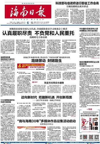 海南日报 头版 001 2018-02-061 2018年02月06日 星期二