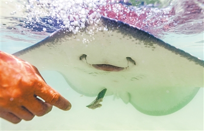 据了解,鳐鱼又称魔鬼鱼、老板鱼,属常见鱼类,广泛分布于热带和温带各近海岸海区。分界洲岛鳐鱼观赏互动区紧邻景区码头,位于纯自然海域。鳐鱼在观赏区内自由游动、捕食。游客可以观赏到鳐鱼捕食、玩耍的情形,并可拿鱼块给鳐鱼喂食。该项目将丰富游客在景区的游玩内容,增加海洋旅游乐趣。