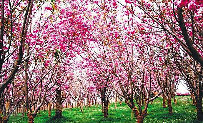 一直以来,提到赏樱,人们就会想到日本。其实,樱花原产北半球温带环喜马拉雅山地区,在世界各地都有生长,花常于3月与叶同放或叶后开花,花色幽香艳丽。樱花可分单瓣和复瓣两类,单瓣类能开花结果,复瓣类多半不结果。据文献资料考证,2000多年前的秦汉时期,樱花已在中国宫苑内栽培。唐朝时樱花已普遍出现在私家庭院,当时万国来朝,日本朝拜者将樱花带回了东瀛。