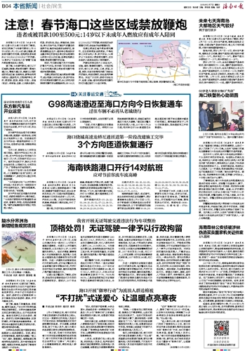 海南日报 本省新闻社会/民生 016 2018-02-071 2018年02月07日 星期三