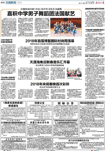 海南日报 文娱新闻综合 018 2018-02-071 2018年02月07日 星期三