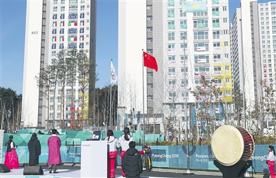 代表团约有60人参加当日升旗仪式,包括代表团团长苟仲文、副团长高志丹,及中国短道速滑队、花样滑冰队、速滑队等运动员。