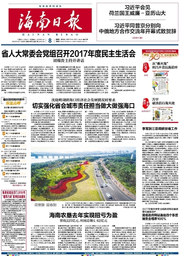 海南日报 头版 001 2018-02-081 2018年02月08日 星期四