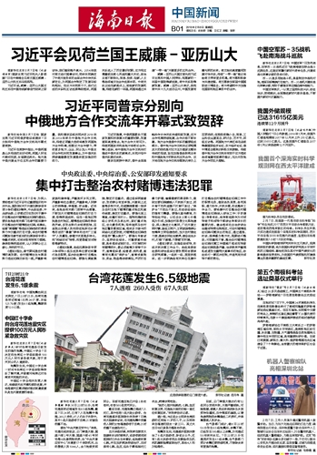 海南日报 中国新闻 013 2018-02-081 2018年02月08日 星期四