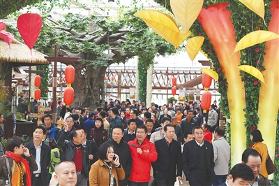 在近1万平方米的鲜花餐厅内,特色十足的立体造型花架组成一片花海,欧式风格的桌椅让鲜花餐厅呈现出浓郁的田园风。“这里可一次性容纳1600人用餐,能满足各类庆典需求,游客还能品尝到以鲜花和热带水果为食材的鲜花菜肴。” 黄卓华说。