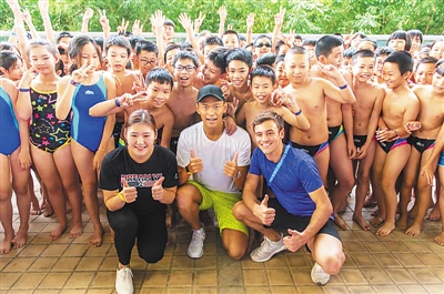 在“世界明星&全民游泳公开课”中,中国游泳队队长孙杨、名将叶诗文、英国跳水名将汤姆·戴利为三亚百余名中小学生上了堂世界级的游泳公开课,热爱游泳的种子在孩子心中生根发芽。