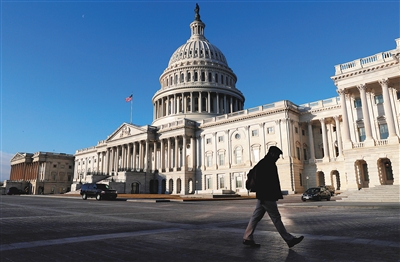 2月8日,在美国华盛顿,一名男子从国会山前走过。 由于美国国会未能在8日午夜前批准一项临时拨款法案,美国联邦政府被迫技术性“停摆”。美国联邦政府预算向来是两党政治博弈的焦点和筹码。由于两党未能在2018财年(始于2017年10月1日)开始前就本财年各联邦政府部门的具体支出方案达成一致,过去几个月联邦政府一直依靠临时拨款法案运营。 新华社/路透