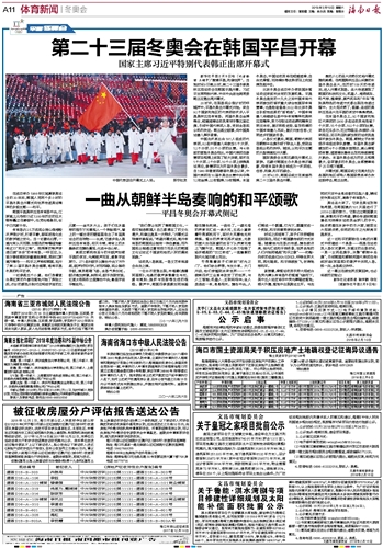 海南日报 体育新闻冬奥会 011 2018-02-101 2018年02月10日 星期六