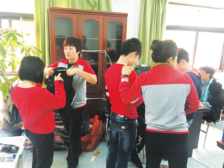 2月9日下午,海口市社会福利院青少部孩子们的生活区里,11岁的小乐刚刚午觉醒来,就被小伙伴们叫着去选新衣服了。在社工阿姨的帮助下,小乐试了毛衣、羽绒服、鞋子,脸上洋溢着快乐的笑容。