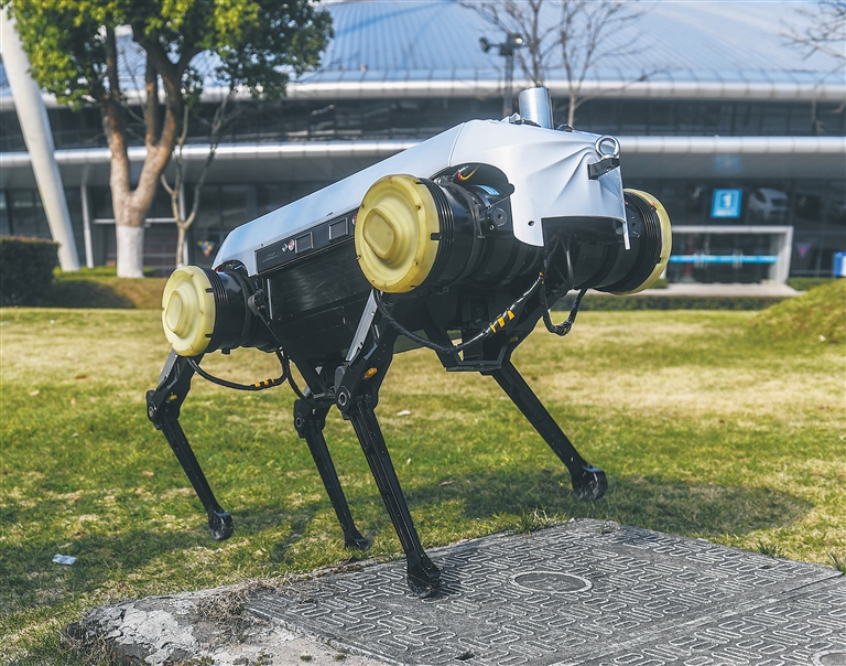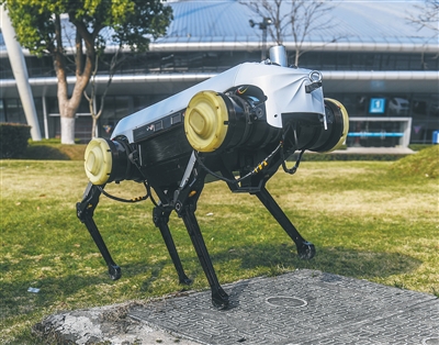 2月11日,在浙大紫金港校区,四足机器人正在跨越地面障碍。 近日,浙江大学的机器人研发团队发布了“绝影”四足机器人。该机器人身长1米,四足站立时60厘米高,重70千克,载重可达到20公斤,行走速度为每小时6公里,续航时间2小时。 目前,“绝影”四足机器人已经掌握了跑跳、爬梯子、在碎石子路上行走、自主蹲下再站起来等许多能力,即使摔倒在地,也能够自动调整身体方位重新站立,有望在安防、侦查、救灾等实际场景中进行应用。