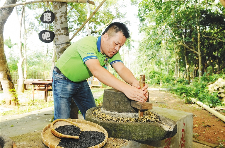 记者了解到,不仅是加乐,在澄迈南部中兴镇、仁兴镇等多个乡镇,村民们大多都有制作黑豆腐迎春节的习俗。但黑豆腐源自何处,为何得赶在春节前制作,各方说法尚不统一。“唯一可以确定的是,近些年老人们制作手工黑豆腐,都是为了让外出打工、求学的游子,能够在春节这个特殊的节日里,尝一尝最质朴的家乡味。”王和山说。
