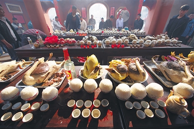 鸡、鸭、鹅和饭团是海南人常用的祭祖食物
