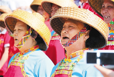 张远来介绍,时代变迁,但三亚崖州“有歌即为舞台”的传统依然延续,在树下、村口、家院内,常有亲友乡邻独吟或是对唱一曲崖州民歌。每逢春节,不少村民还会自发组织在村内空地搭建舞台,邀能歌善舞的艺人助兴表演,村民相聚演唱崖州民歌,锣鼓奏响、音起悠扬,借歌声共抒情怀、表达喜悦,台上台下其乐融融,这也是众亲友所盼的年度盛事。除了欢愉乐曲,还有不少人在阖家团圆的日子,吟唱思乡情怀的崖州民歌,“摇侬咧,摇侬勿哭勿作样,摇侬勿哭静静卧,勿作浪唠给母娘……”等崖州民歌广为流传。
