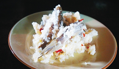 在保亭,鱼酸(也称“鱼茶”)是黎族人招待客人的主要菜肴,也是他们年夜饭的必备食物。鱼酸的制作并不难,但也很讲究。将新鲜捕捞的鱼清理干净并晒干后,加入煮熟的米饭和盐巴,将它们搅拌均匀后装进密封的坛子中,等待10天至15天就可以食用。