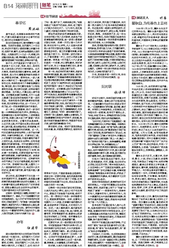 | 海南日报 随笔 026 2018-02-121 2018年02月12日 星期一 |
