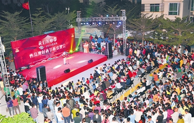 不一会儿,西岛小学内聚集了上千名村民。不大的广场,简易的舞台上,聚光灯下,由村民们自编自导的舞蹈、小品、歌曲串烧等20个节目轮番登台。