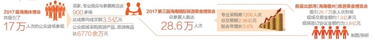 2017年,不管是欢乐节中的海南休博会和旅游美食博览会,还是首届北部湾(海南儋州)旅游美食博览会,内容涵盖会展、商贸、文化、美食等多个方面,充分发挥了我省旅游业的拉动力和融合力,为推进我省“休闲+旅游”、“美食+旅游” 等产业融合搭建了一个稳固的平台。