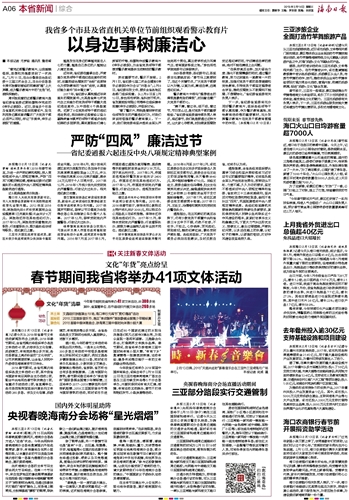 海南日报 本省新闻综合 006 2018-02-141 2018年02月14日 星期三