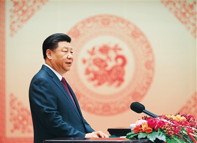 习近平指出,春节是新的开始,预示着新的希望。2018年是全面贯彻中共十九大精神的开局之年,是决胜全面建成小康社会、实施“十三五”规划承上启下的关键之年,也是改革开放40周年。面对波谲云诡的国际形势、艰巨繁重的国内改革发展稳定任务,全党全军全国各族人民要紧密团结在党中央周围,全面贯彻党的十九大精神,坚持以马克思列宁主义、毛泽东思想、邓小平理论、“三个代表”重要思想、科学发展观、新时代中国特色社会主义思想为指导,增强“四个意识”,坚定“四个自信”,坚持稳中求进工作总基调,以真抓的实劲、敢抓的狠劲、善抓的巧劲、常抓的韧劲,统筹推进“五位一体”总体布局,协调推进“四个全面”战略布局,一步一个脚印把既定的行动纲领、战略决策、工作部署变为现实,继续朝着我们确立的伟大目标奋勇前进。