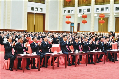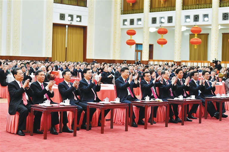 党和国家领导人李克强、张德江、俞正声、张高丽、栗战书、汪洋、王沪宁、赵乐际、韩正等出席团拜会,李克强主持。