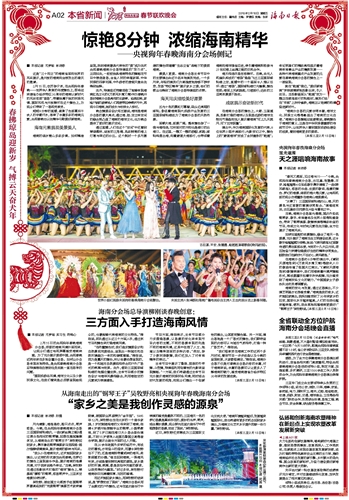 短短8分钟的直播,凝聚了台前幕后千余人的辛勤汗水,荟萃了丰富多彩的海南元素,央视春晚也以此精华勾勒美好新海南。