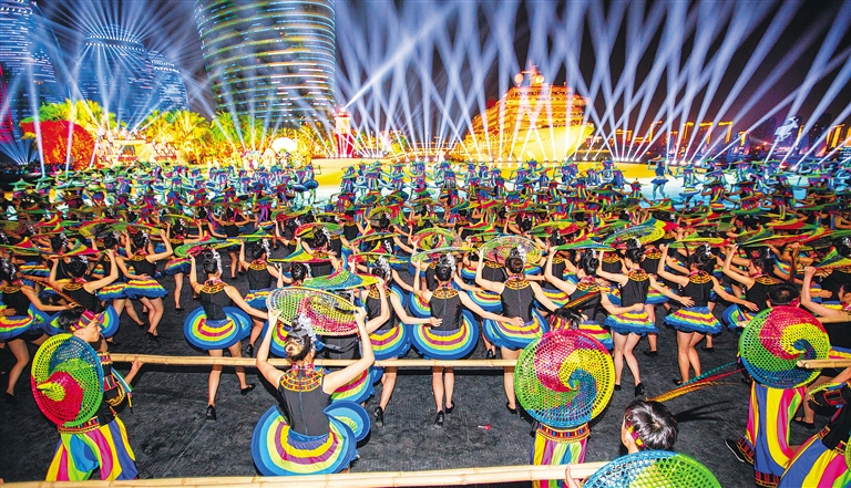 “千人竹竿舞表演太震撼了,演员们在投影与灯光打造的绚烂舞台上欢快起舞,我和家人都迫不及待地想飞去海南,感受海南的文化艺术魅力!”坐在电视机前收看春晚的上海市民郝梦夷说。