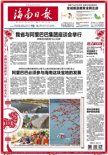 2016年底,省政府与阿里巴巴集团签署战略合作协议。1年多来,双方围绕“互联网+旅游”、文体产业、农村电商、大数据等领域开展紧密合作,合作内容逐步落地,有力推动了海南互联网及相关产业的发展。