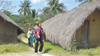 2月18日,游客参观东方市白查村船形屋。本报记者 古月 摄