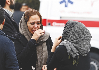 2月18日,失事客机乘客的亲友聚集在德黑兰机场附近。新华社/法新