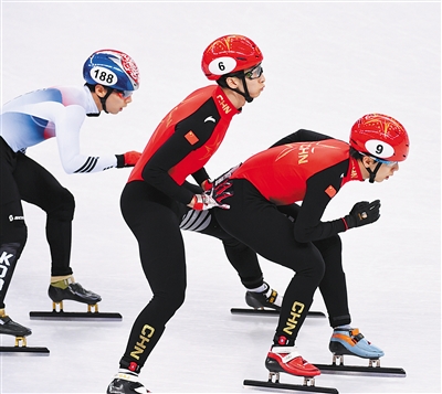 共有四名选手进入决赛,世界排名第一的武大靖完全没有给剩下3位对手近身的机会,一直领滑到终点。